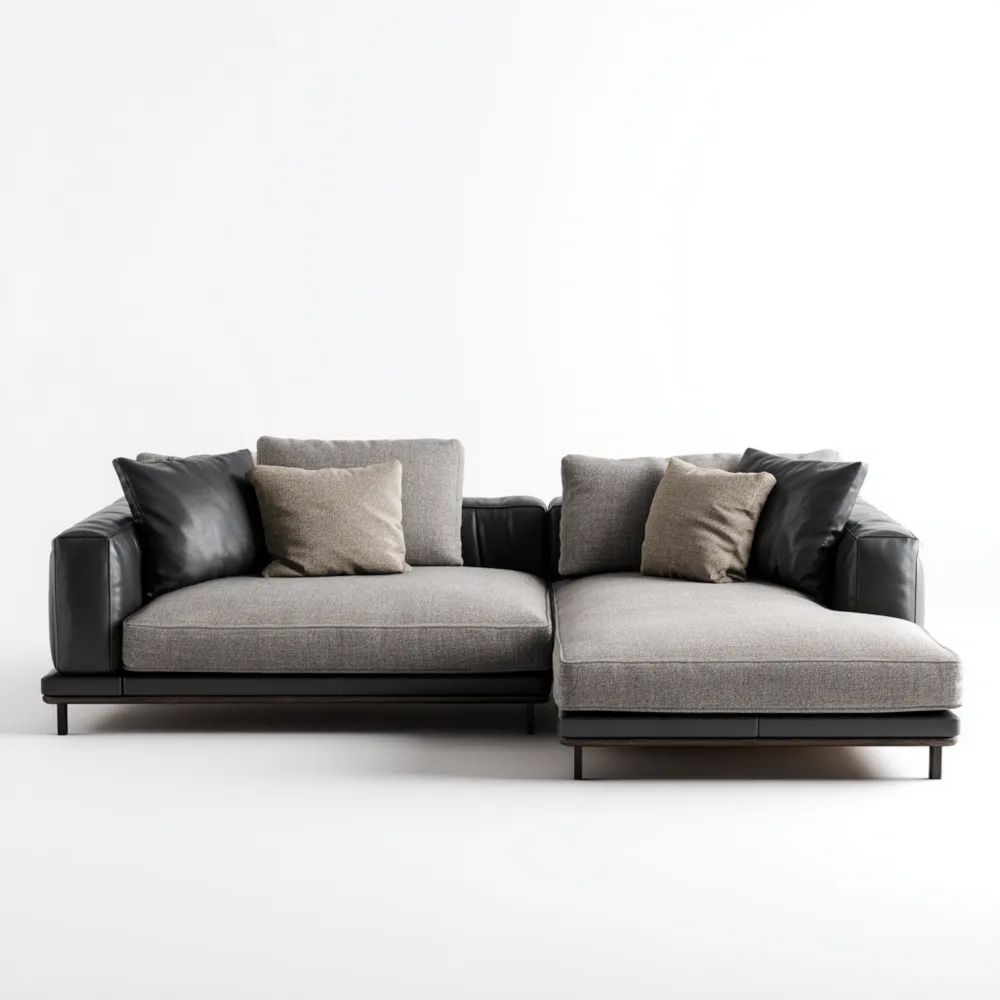 Divano angolare in pelle e tessuto 275x150x85 cm - Nero/Grigio - Design moderno