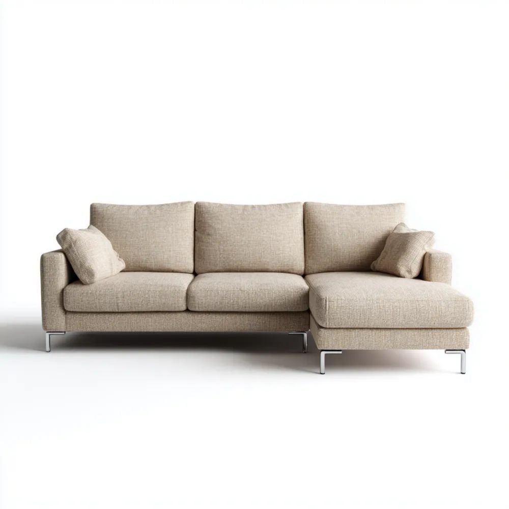 Divano angolare in tessuto 252x90x160 cm – Beige – Design contemporaneo