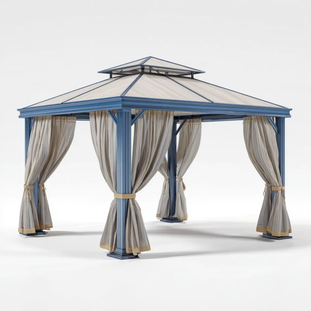 Gazebo in Metallo con Tende 300x300x260 cm - Beige/Blu