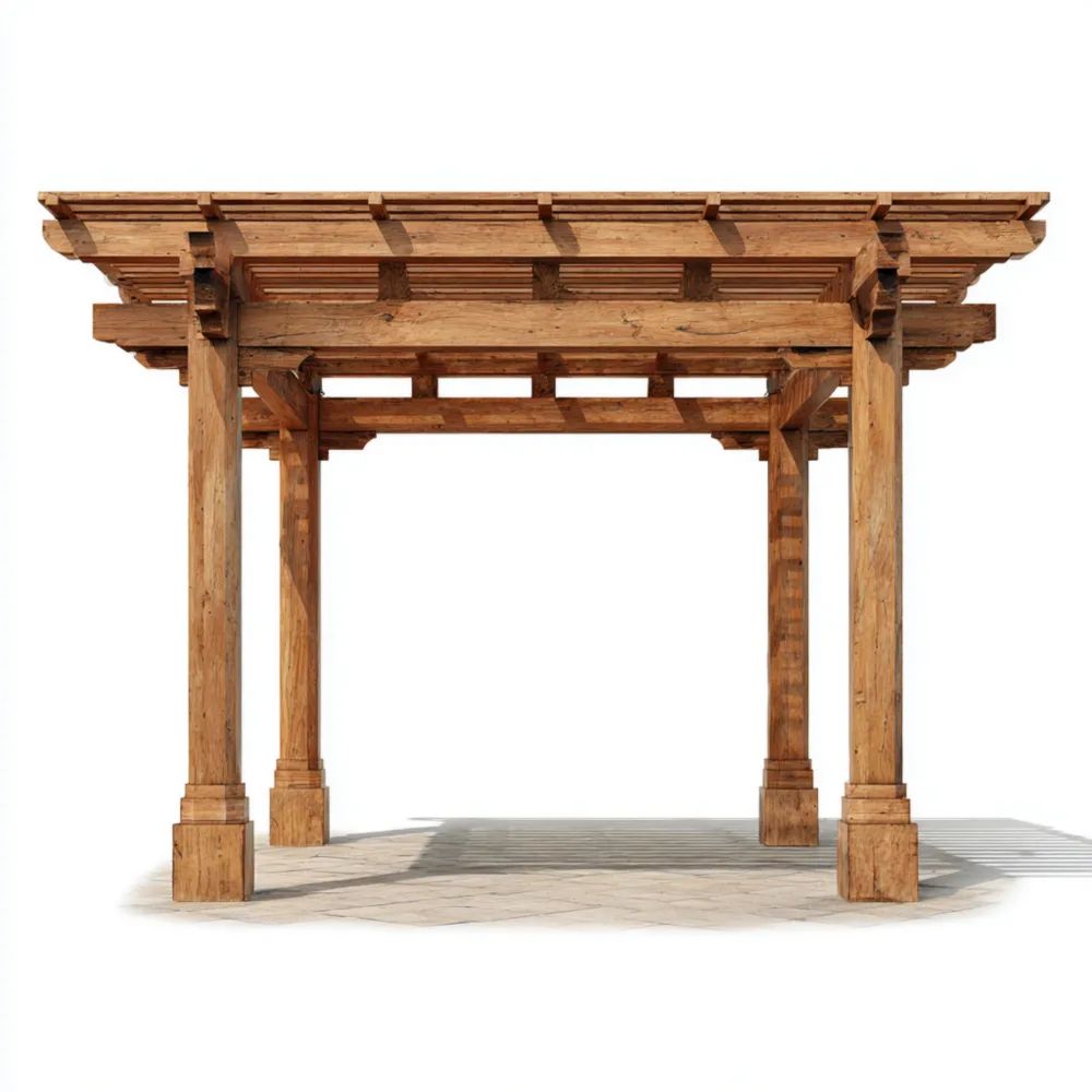 Materiale e lavorazioneRealizzata in legno massiccio, la pergola presenta una finitura naturale che esalta il calore del legno e resiste alle intemperie.